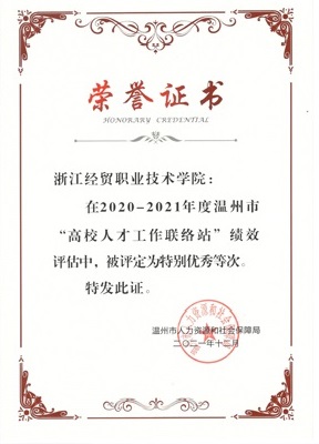 近日,学校收到温州市人力资源和社会保障局发来的感谢函,对我校在宣传温州人才政策、推介岗位信息、举行校园专场招聘会、开展各类引才活动等方面给予温州的大力支持表示感谢。在2020-2021年度温州市“高校人才工作联络站”绩效评估中,我校被评定为“特别优秀”等次。