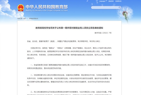 日前,教育部发布了《教育部高校学生司关于公布第一期供需对接就业育人项目立项名单的通知》(教学司函〔2022〕7号),我校3个项目喜获立项,其中定向人才培养培训项目1个,就业实习基地项目2个。