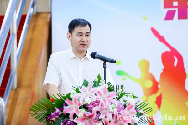 劳赐铭在开幕式上致欢迎词。他代表学校师生向参加比赛的各位领导、运动员、教练员和裁判员致以热烈的欢迎。他表示,一直以来,学校高度重视体育工作,不断深化体育教学改革,积极推进全民健身活动。本次比赛不仅搭建了同台竞技、切磋乒乓球技艺的良好平台,更为学校提供了向各兄弟单位学习的难得机会。作为承办方,学校将竭尽全力做好各项服务保障工作。