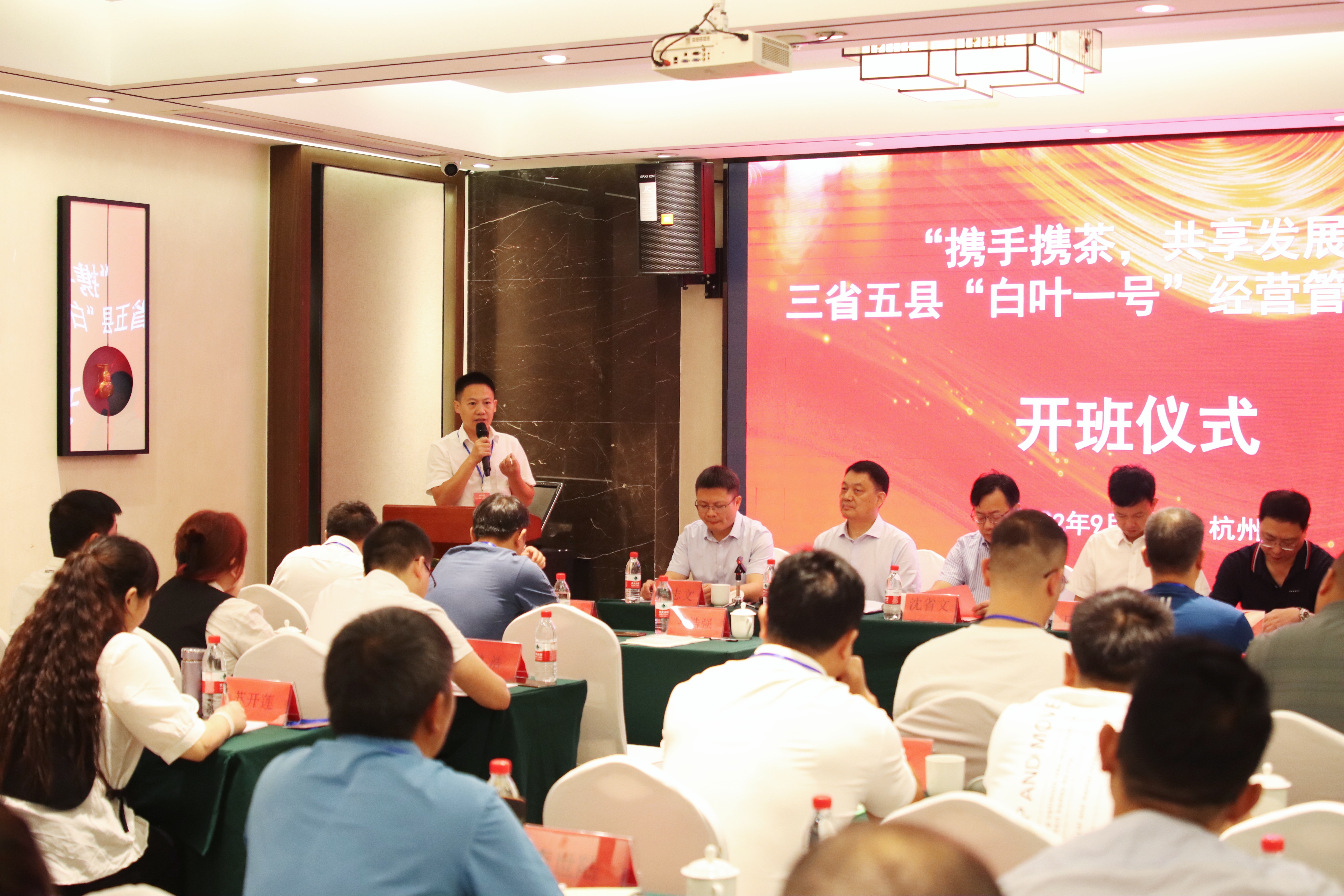 9月19日,省供销社和浙江茶业学院联合主办,浙茶集团承办的2022年度“携手携茶,共享发展”三省五县“白叶一号”经营管理培训班在杭州龙坞茶镇举行开班仪式。省供销社党委委员、理事会副主任沈省文出席并致辞。