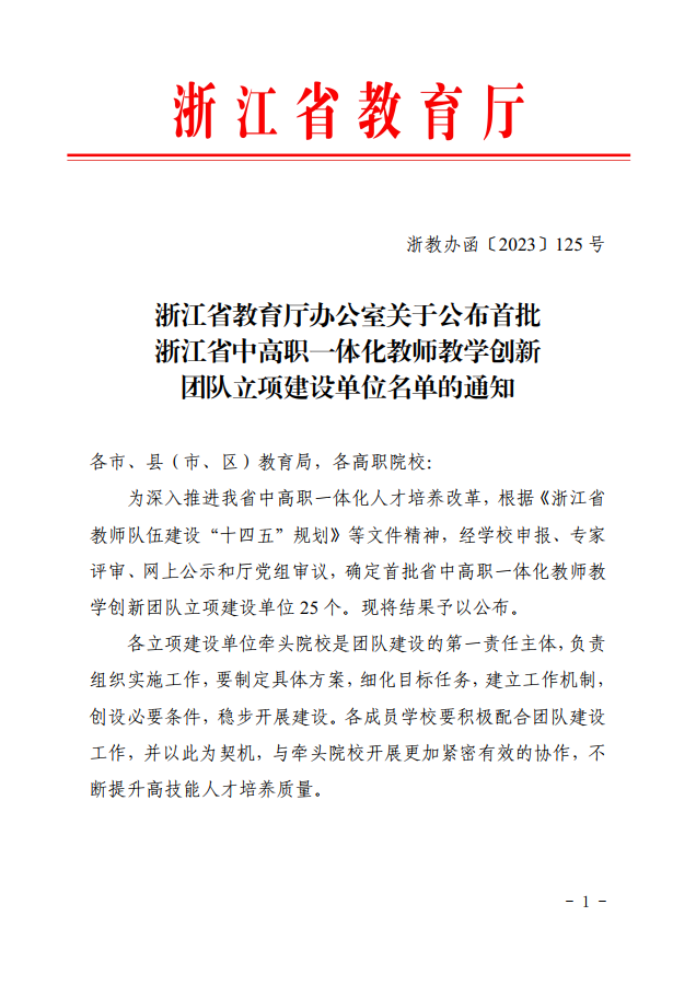近日,浙江省教育厅公布了首批25个浙江省中高职一体化教师教学创新团队名单,我校电子商务专业团队成功入选。